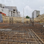 În aceste zile, pe șantierul blocului cu apartamente noi de vânzare Bucegi 12, situat în imediata apropiere a Palatului de Justiție și Inspectoratului de Stat în Construcții, cu acces direct în Parcul Mihai Viteazul de pe Republicii, se desfășoară o etapă importantă: armarea radierului general.